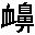 | 見た瞬間、もしや……と思った通りの字。名は体を表さない字が多い中、こんな安直な字も あるとホッとする(笑)。関係ないが、鼻の穴から出てくるのが鼻血なら、鼻の外側を怪我して 出てきた血は……指先を怪我して「指血」なんて言わないことから、別に呼び名は無い普通の血 だろう。 | |